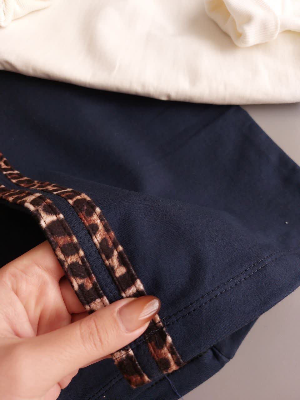 ست بلوز شلوار دختران تیکه پلنگی رنگ سفید سورمه ای سایز ۵۰