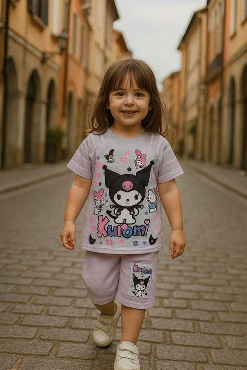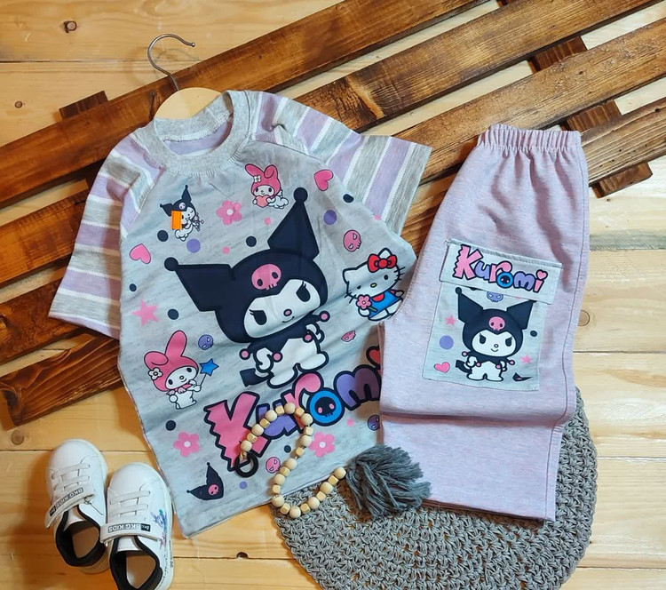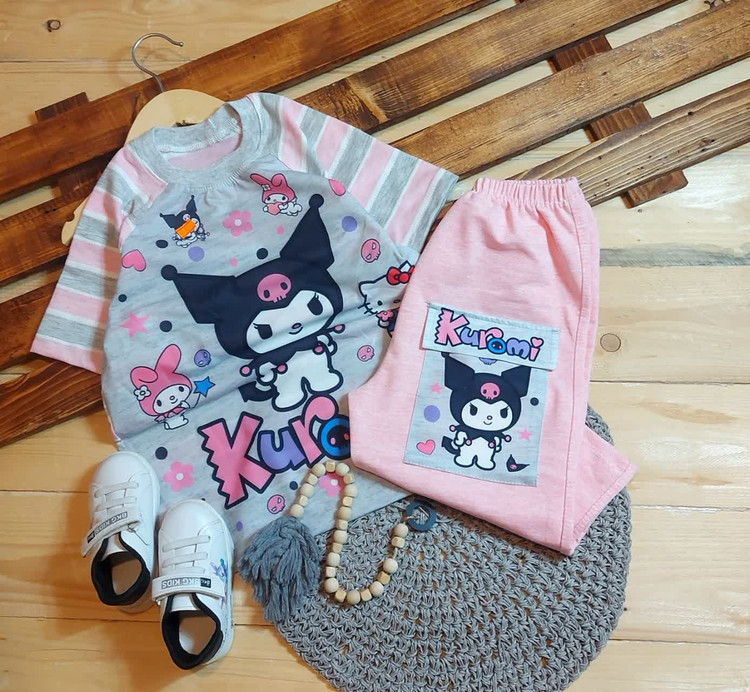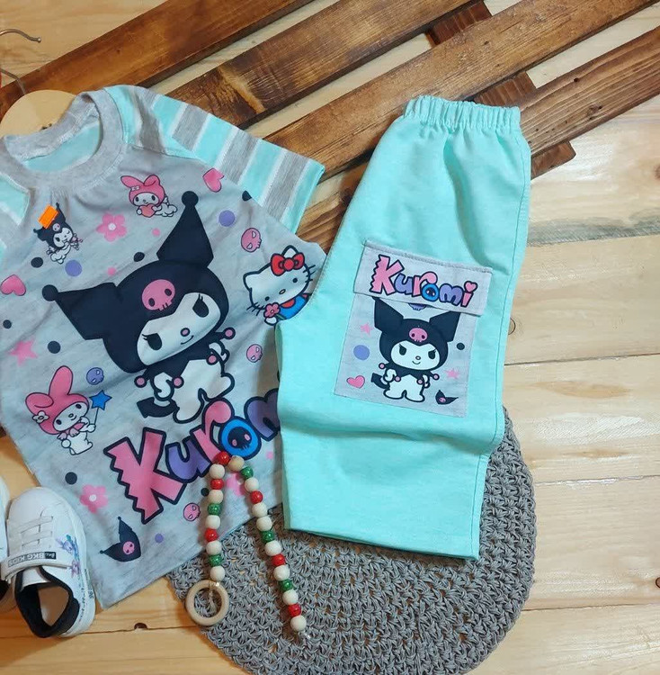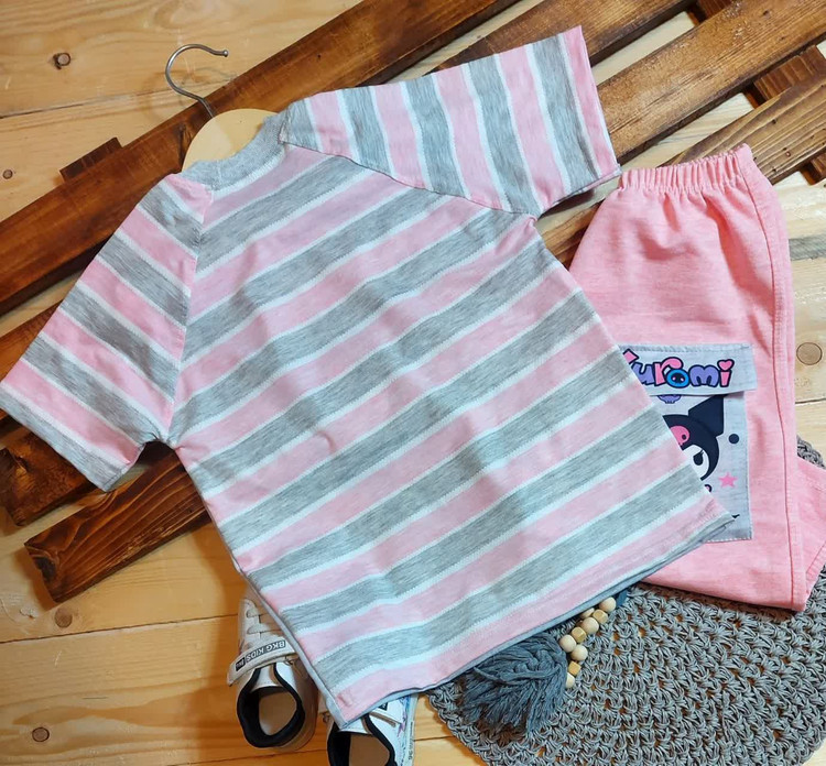 ست تیشرت شلوارک راه راه کرومی ملانژ نوبافت درجه ۱ سایز ۴۵تا۶۵