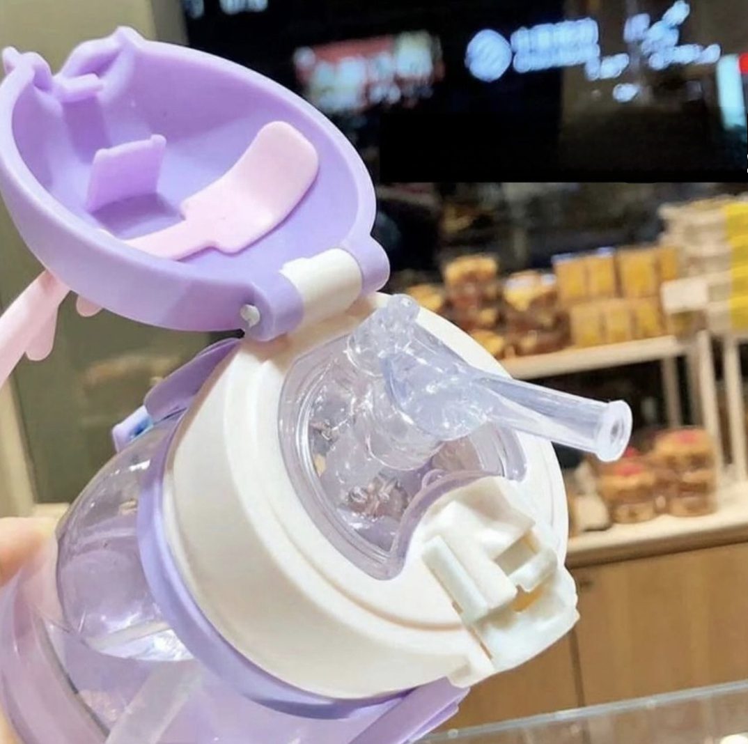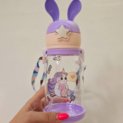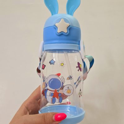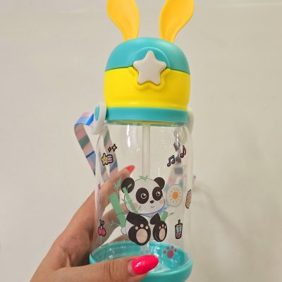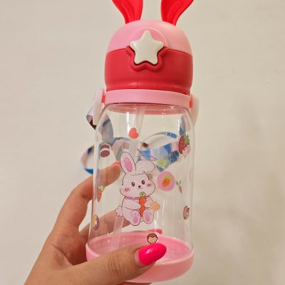 قمقمه خرگوشی نی دار  وارداتیه بدون نشتی و عالی  سایز 19.5 *8.5  و 600 میل بدنه اکرولیک  بند قابل تنظیم